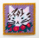Hand stitch a cute white cat with this beginner needlepoint project!