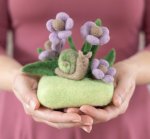 This needle felting kit includes everything needed to make one adorable snail sculpture complete with flowers and leaves. Perfect for a windowsill, little shelf, or work space.